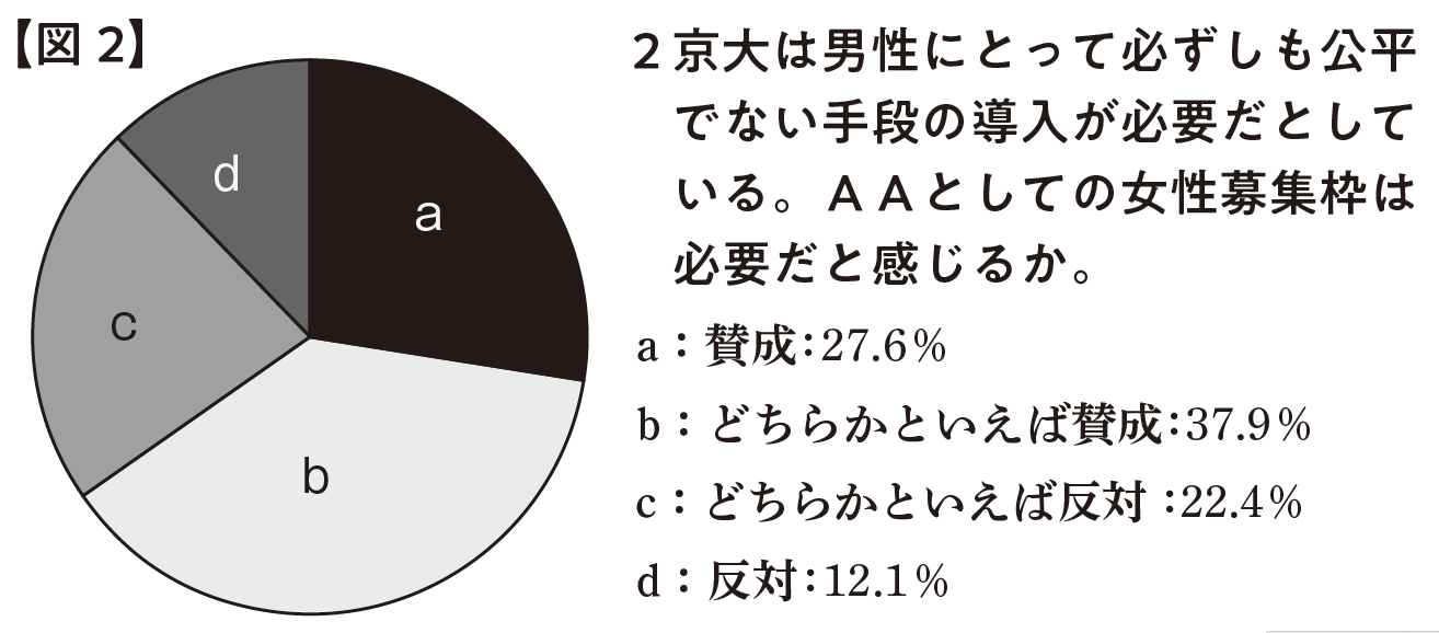2. 京大は男性にとって必ずしも公平でない手段の導入が必要だとしている。アファーマティブアクション(AA)としての女性募集枠は必要だと感じるか。