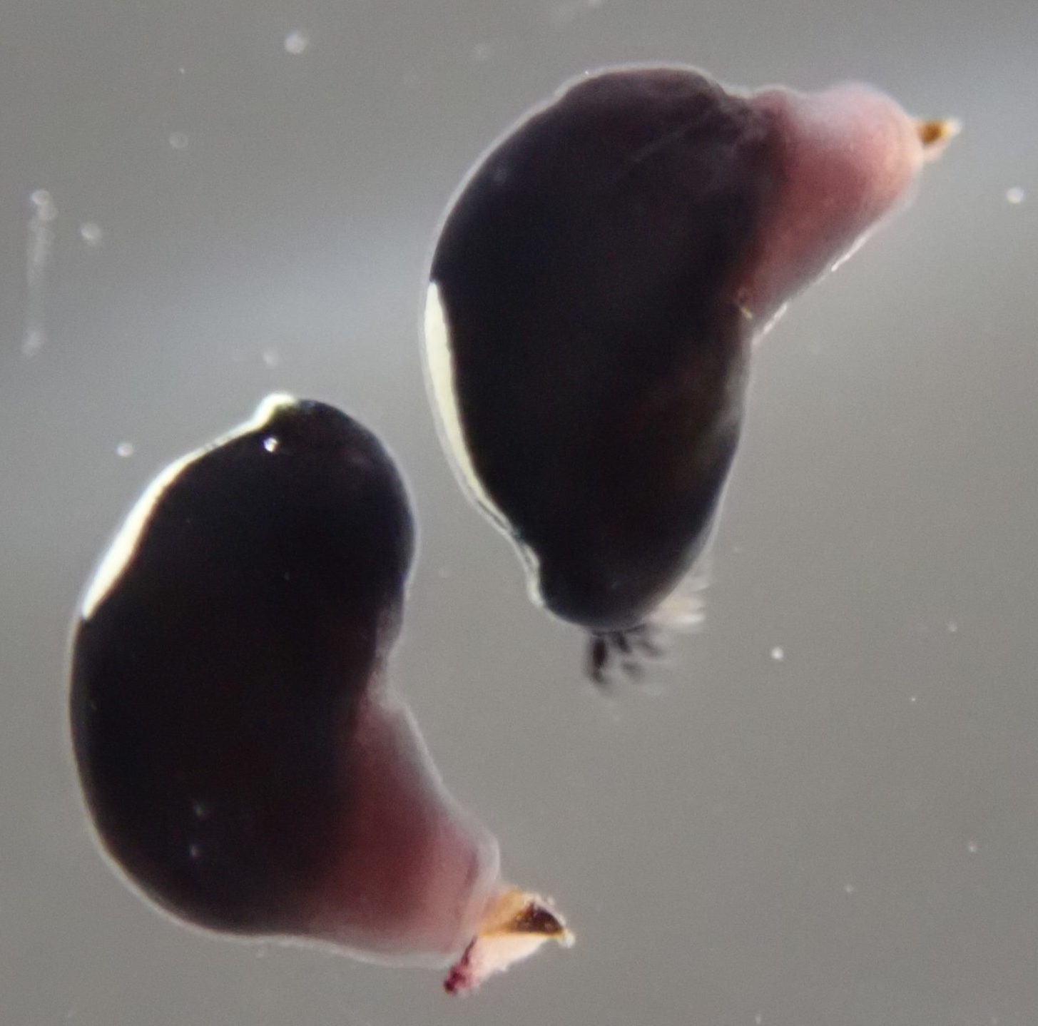 ハナザラの幼生に注目しました。海洋生物の幼生は一般的に海中をプランクトンとして漂いながら、自分の生活に適した環境を感知して着底します。貝類をはじめとする底生生物の成体は長い距離を移動できないので、幼生の着底はその後の運命を左右するとても重要な段階です。たとえば藻食性の貝類は餌となる藻類が生えている場所に着底します。一方、寄生・共生性の貝類は宿主を認識してその体の上などに着底します。ハナザラは藻食性かつ共生性なので、着底する際に藻類とウニのどちらを認識するのか気になりました。