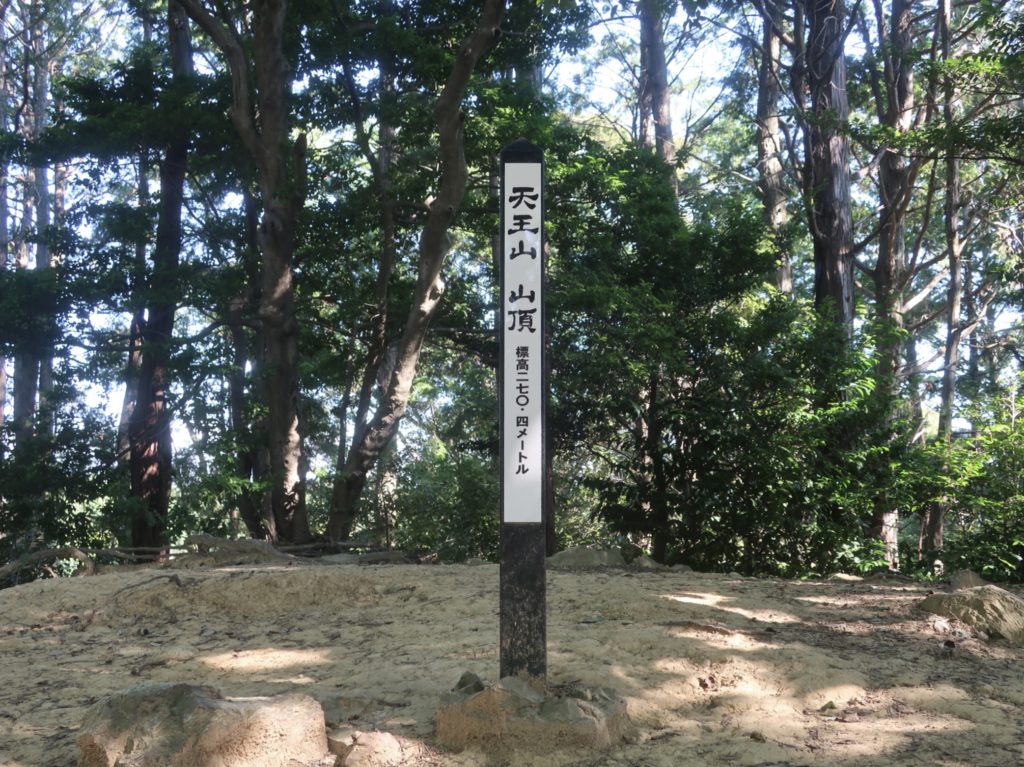 道中はさしたる難所もなく、拍子抜けするほど簡単に頂上についた。麓から登頂までは、ゆっくり登っても1時間もかからない。天王山など簡単に制することができると書けば、今夏が勝負どころの人間にはとても耳触りがいい。頂上は広場として整備されており、椅子がいくつか置かれて休憩できるようになっている。木が生い茂っていて眺望はないが、木が陰をつくって涼しいのが良い。登った記憶が新しいうちにと、スマホでこの記事の下書きをしたためる。山頂は静かなもので、屋外ながら意外に集中して作業ができる。