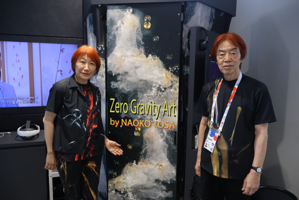 防災研究所の土佐尚子特定教授は、アーティストと大学教員の2足のわらじで活動を行っている。土佐特定教授が現在主に行っているのは、超高速で静止画を連続撮影できる「ハイスピードカメラ」を用い、液体などの跳ね・破砕の瞬間や過程を捉える映像制作だ。万博ではこの映像を用い、胎児として子宮の中にいるかのような浮遊体験ができる近未来芸術「Zero Gravity Art」を、TOPPAN、島津製作所との共同研究の成果として展示している。9月1日時点で、8825名が来場したという。