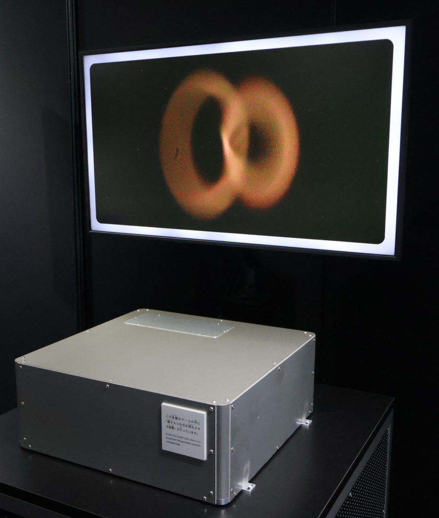 全ての物質は原子からなり、その原子は陽子・中性子・電子など、更に細かな単位に分けられる。これらの粒子は、古典力学とは全く異なる振る舞いをとり、「量子」と呼ばれる。量子の中でも、工学研究科の竹内繁樹教授らが注目しているのは、光の最小単位「光子」だ。近年、光子を含む量子の不思議な性質を情報処理や通信、センシングに応用する「量子技術」が活発に研究されている。こうした時節を踏まえ、竹内研では量子の不思議な性質、またそれを応用した技術に関する展示を、実験装置やアニメーションビデオなどを用いて行った。