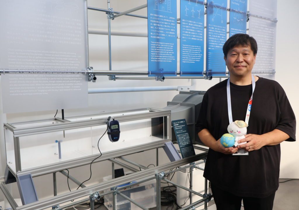 防災研究所の山口弘誠教授は、集中豪雨のメカニズムの解明や降水量の予測など、豪雨災害に関する研究を進めてきた。近年取り組んでいるのは「豪雨制御」という技術の開発。集中豪雨が発生した際、雨雲の発生や降雨を抑え、被害を最小限にとどめるもので、万博ではこの技術に関する展示を行った。12日間の展示で、展示が行われた建物には約1万1千人が訪れた。