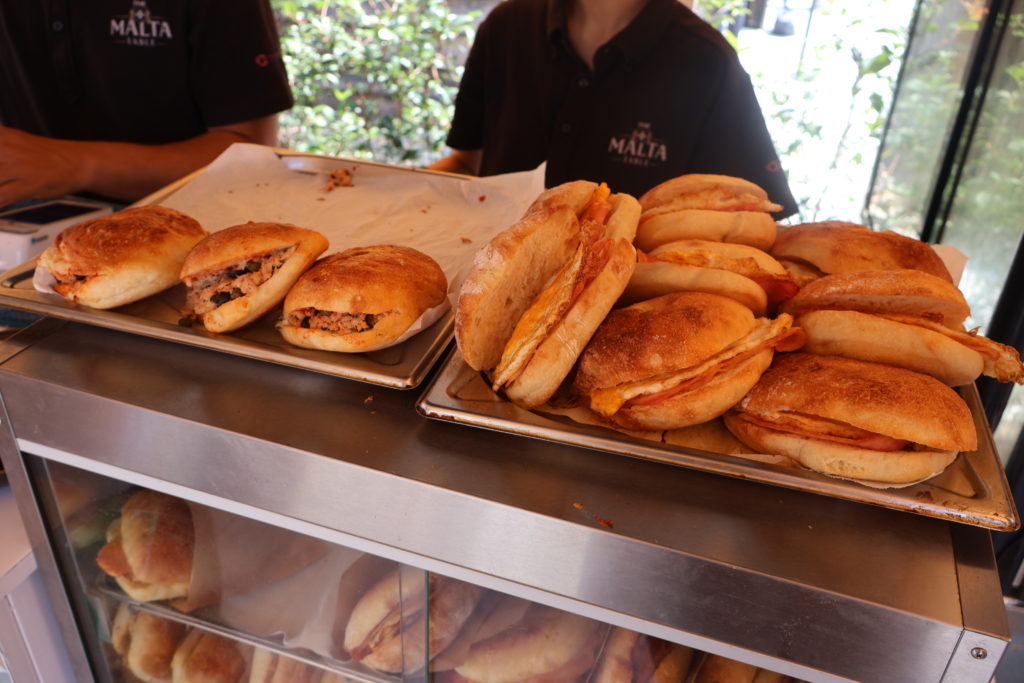 強い日差しが照り付ける11時、マルタ館屋外のワゴンでフティーラのサンドイッチを購入。外はパリッと、中はしっとりとしたパンにたっぷり挟まれたツナの塩味がガツンと来て中毒性がある。オリーブとケッパーの風味も良いアクセントになっている。地中海の恵みを存分に味わえる一品だ。