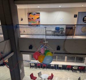 2つ目は「巨大UFOキャッチャー」です。共北28の隣にある吹き抜けを利用して、自作した巨大なUFOキャッチャーを設置します。この企画は2010年代に毎年行われていたもので、かの森見登美彦氏の作品『夜は短し歩けよ乙女』で描かれたこともあり、もしかしたらご存知の方もいらっしゃるかもしれません。諸事情で2018年を最後に行われていなかった企画が、昨年有志の手によって復活しました。来場された方には、そのUFOキャッチャーを操作して景品を手に入れていただきます。ゲームセンターにあるものよりはるかに大きなUFOキャッチャーをぜひ楽しんでください!