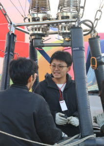 昨年度の学生選手権や今年度の北海道バルーンフェスティバルで優勝した京大熱気球部。大会では普段の練習よりも観客との距離が近く、「声援に応えたり手を振ったり、コミュニケーションが楽しい」と魅力を語ってくれた。神奈川県出身。(燕)