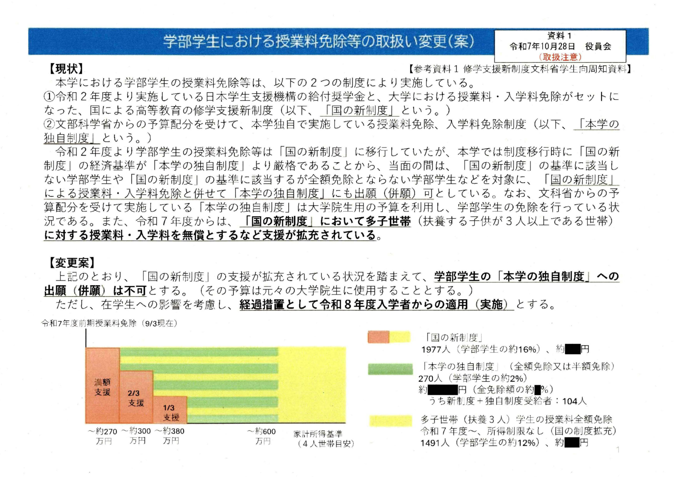 学生ら署名1万筆と質問提出 独自の授業料免除変更 背景は