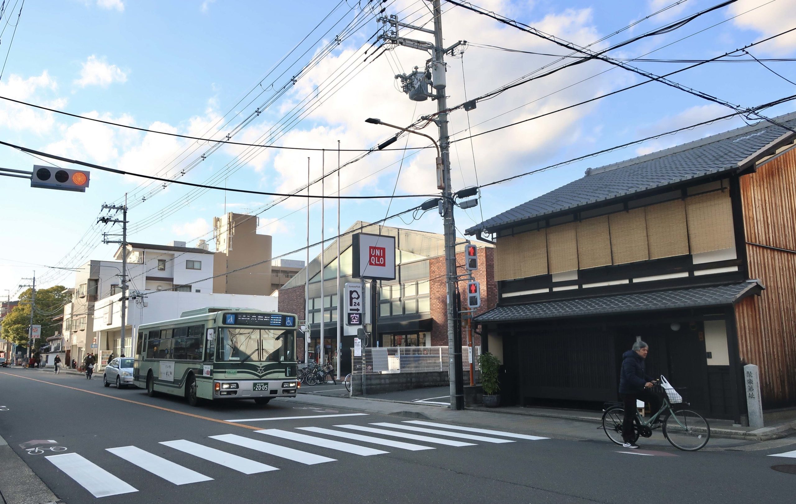 「羅城門遺址」の碑は1895年、平安遷都千百年を記念して建立されたが、当時は周辺に田畑が広がるのどかな場所だった。戦後の1955年、碑周辺が児童公園として整備されることになった。「羅城門」の名が地名や停留所名に現れるのはこのころとみられる。憶測の域をでないが、現存しない門の名前を採用した背景には、50年に映画化された黒澤明監督の映画「羅生門」の流行もあったのかもしれない。