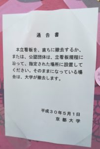 本紙は今年の入試当日のタテカン設置について、京大にメールで回答を求めた。
