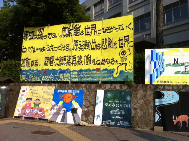 規制開始前の百万遍に並ぶ立て看板(撮影=2012年)
