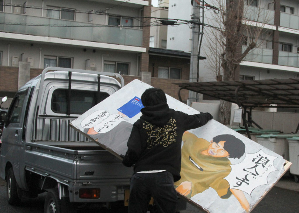 しかし現在まで、タテカンを作り設置する文化は学生の間で途絶えていない。とりわけ入試当日に設置されるタテカンは毎年SNS上で大きな反響を呼ぶ。大学からの厳しい視線のもとで、タテカンはどのように作られ、運ばれ、立てられるのか。タテカンを制作する学生たちの、緊張感と情熱に満ちた2日間を追った。この2日間を彼らは呼ぶ、「入試闘争」と――。(取材・撮影:田・匡・汐、記事:田)