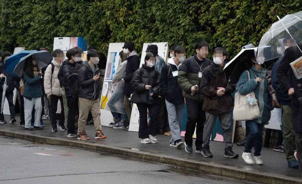 受験生が増えてきた。学生たちが「応援してるよ」などと声をかける。途中、職員数人が学生らの様子を伺っていたものの、声をかけることはなかった。