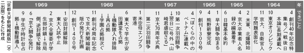 浪岡 そもそも出すのが難しかった。編集部として「ここらでもうギブアップ」という気分もあった。当時は、各大学の学生新聞がなくなっていく時代。京大新聞も合併号の連続で悲鳴を上げながら出していた。50周年の直後で、歴史ある新聞をつぶしてしまっては申し訳ないし、つぶす権利はない。そう思って、先輩のツテで人を集めた。