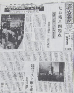学生部長寄稿100%学生自身の手になる新聞の果たした仕事は、時には若さに任せてのいさみ足的な誤りもあったのかもしれない。みる人々によってその評価はさまざまであろう。これに対する正しく評価を下す自信はない。しかし少なくとも京大学生の世論をその時々忠実に表現しようとするその努力は評価すべきであろう。