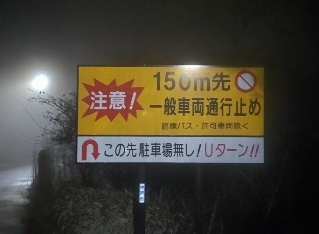 順調に高速を進み、展望台が位置する摩耶山に突入する。しかし、標高が上がるにつれて霧が濃くなってきた。最終的に5㍍先もはっきりとは見えないほどになってしまった。怯えながらも慎重に進むと、後続車のヘッドライトがルームミラーに映った。慣れない山道に加えて、濃い霧に辟易した私は、道を譲ることにした。ゆっくり減速し、ハザードランプを焚くが追い越す気配はない。振り返ると、後続車も譲る素振りを見せ、まさかの譲り合いが発生していた。泣く泣く、車列の先頭で孤軍奮闘していると、突然、視界の端に小さい影が映った。慌ててブレーキを踏むとリスのような小動物の姿が。お化けでないことに安心しつつも先を急いだ。