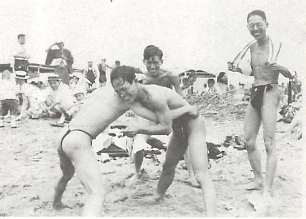 1933年、滝川事件のさなかに部員を連れて水浴びに出かけた。右端が入山