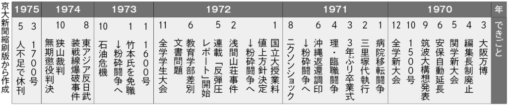 | 1959 | 通算千号に到達、『京都大学新聞』に改題 |