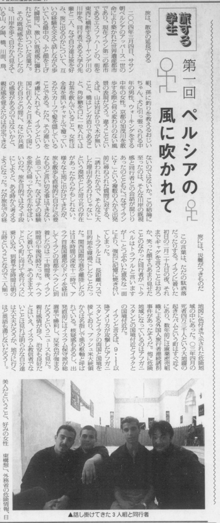 大島 イランに行って旅行記を書いた。コーナーとして後に何人か続いてくれた。在日コリアンの編集員が自分の来歴を絡めて書いてくれて、すごくよかった。