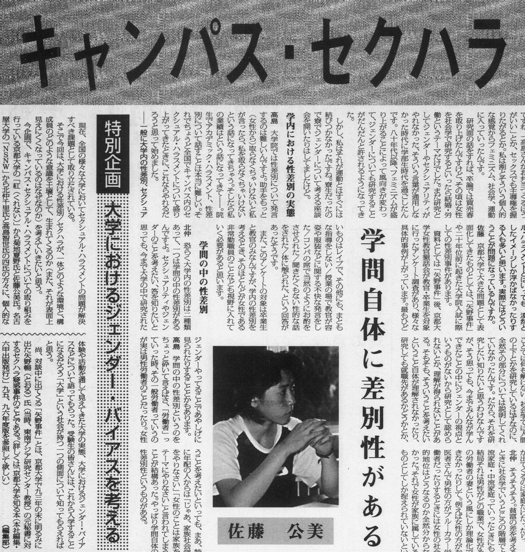 学生として90年代の京大を過ごし、在学中に寄稿などで本紙の紙面を彩った2名の教員から、当時を振り返る寄稿をもらった。國重裕氏は核反対運動の体験記や音楽に関する寄稿、佐藤公美氏はキャンパス・セクハラを考える学生団体の一員として座談会記事などで協力を得た。